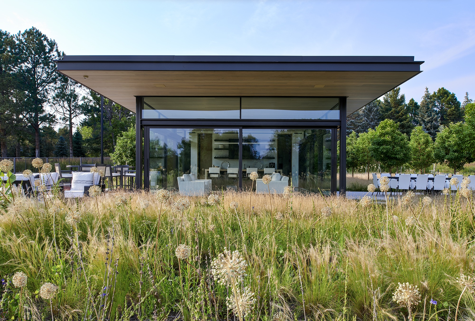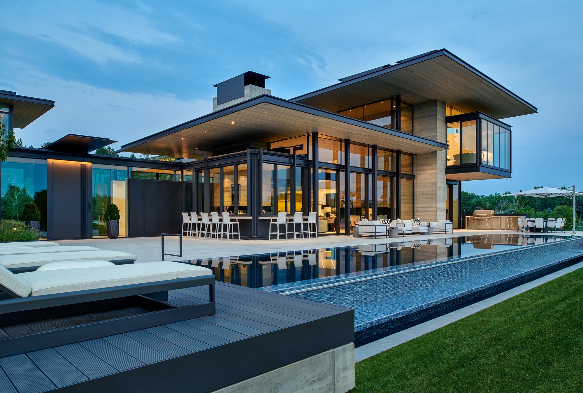 Prairie Modern redefines outdoor living with its minimalist yet inviting design. Featuring expansive patios, structured plantings, and contemporary fire and water features, this space blends seamlessly with its surroundings. The balance of refined stonework and native greenery creates an outdoor experience that is both striking and serene.